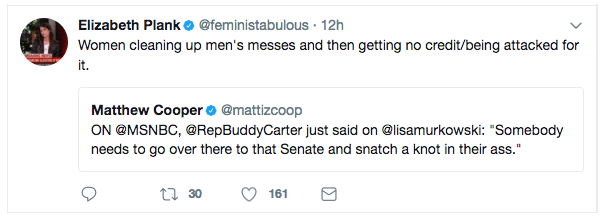 Calling out the gender bias against Senators Lisa Murkowski and Susan Collins shows some progress.